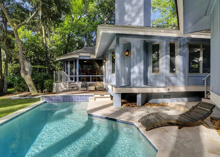 The centre of Hilton Head Island is nearly 5 km from the venue. An own beach is just metres away. You can get to Islanders Public Beach Park in a few minutes by car. This 88 m² villa is 10 km from Hilton Head airport.